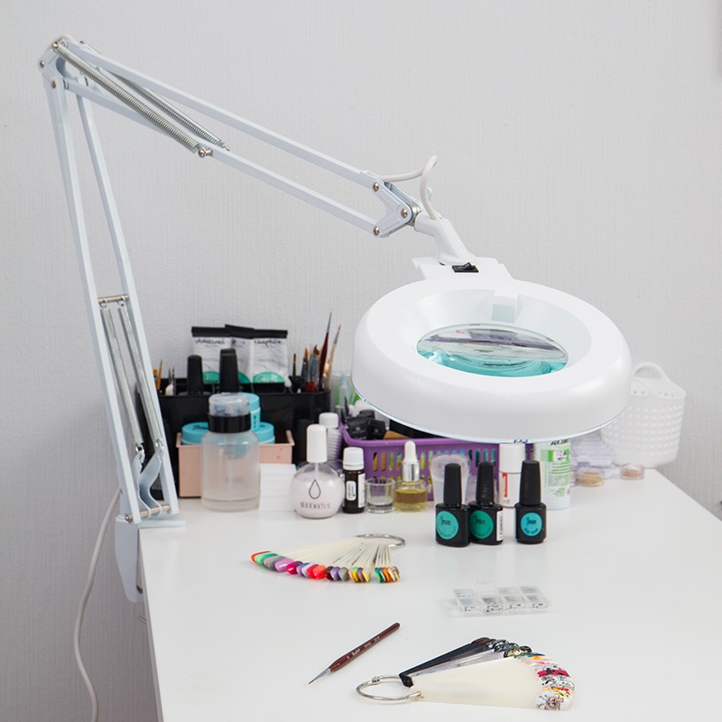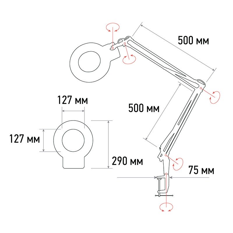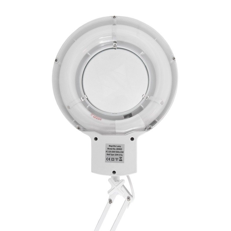 Лупа на струбцине круглая настольная с подсветкой, белая REXANT имеет широкий спектр применения. Оптическая сила линзы – 3 диоптрии, что обеспечивает увеличение в 1,75 раза. <br> Используется во многих областях жизнедеятельности человека: косметологии, ногтевом сервисе, ювелирном деле и т.д. <br> Система состоит из линзы, пантографического механизма и бестеневой подсветки.<br> Стеклянная линза не искажает изображение. Пантографический механизм, состоящий из звеньев, обеспечивает хорошую устойчивость лупы в пространстве в необходимом положении (радиус регулировки 100 см). Бестеневая подсветка позволяет работать в улучшенных условиях. В лампу встроен специальный электронный блок управления, благодаря которому лампа излучает ровный свет без мерцания. Устройство экономично: потребляет в рабочем состоянии 22 Вт.<br> Изделие фиксируется на поверхностях с помощью удобного струбцинного крепления.<br> Размер линзы: 127мм. Цвет корпуса: белый.