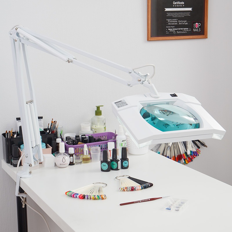 Лупа белого цвета, выполненная в квадратной форме, предназначена для визуального увеличения различных мелких предметов или их фрагментов. Применяется для организации труда людей со слабым зрением. Устройство популярно в косметологии, биологии, медицине, швейном и вышивальном деле. Зачастую используется при выполнении ювелирных и радиомонтажных работ, а также при ремонте часов.
