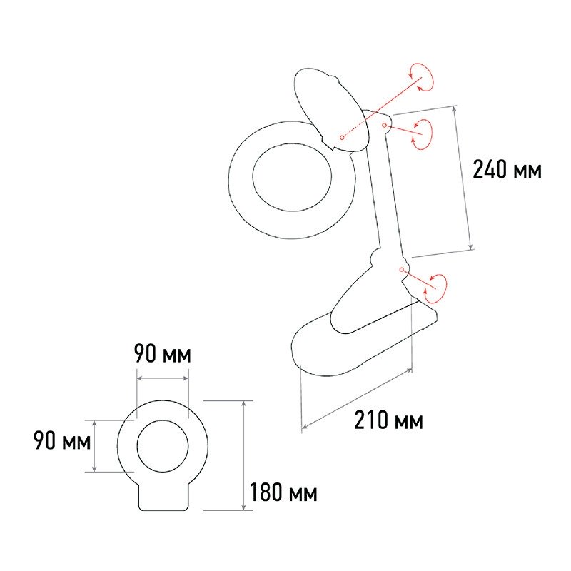 Лупа на струбцине круглой формы, настольная, 5D, с подсветкой, REXANT. Предназначена для визуального увеличения различных мелких предметов или их фрагментов. Используется в косметологии, в тату-салонах, в биологии и медицине, в швейном и вышивальном деле, при выполнении ювелирных и радиомонтажных работ, ремонте часов, а также для организации труда людей со слабым зрением.<br> В состав оптической системы входят: линза, пантографический механизм, подсветка.<br> Линза, выполненная из стекла, обеспечивает четкое изображение, а пантографический механизм – устойчивость и фиксацию. Вы сможете настроить расположение лупы так, как Вам удобно: радиус регулировки 100 см. Размер линзы: 178мм. Лампа излучает ровный свет без мерцания. В рабочем состоянии потребляет 12 Вт, что экономично. <br> Увеличенный срок службы достигается за счет использования светодиодной (84 SMD LED) подсветки. Устройство излучает ровный свет без мерцания.