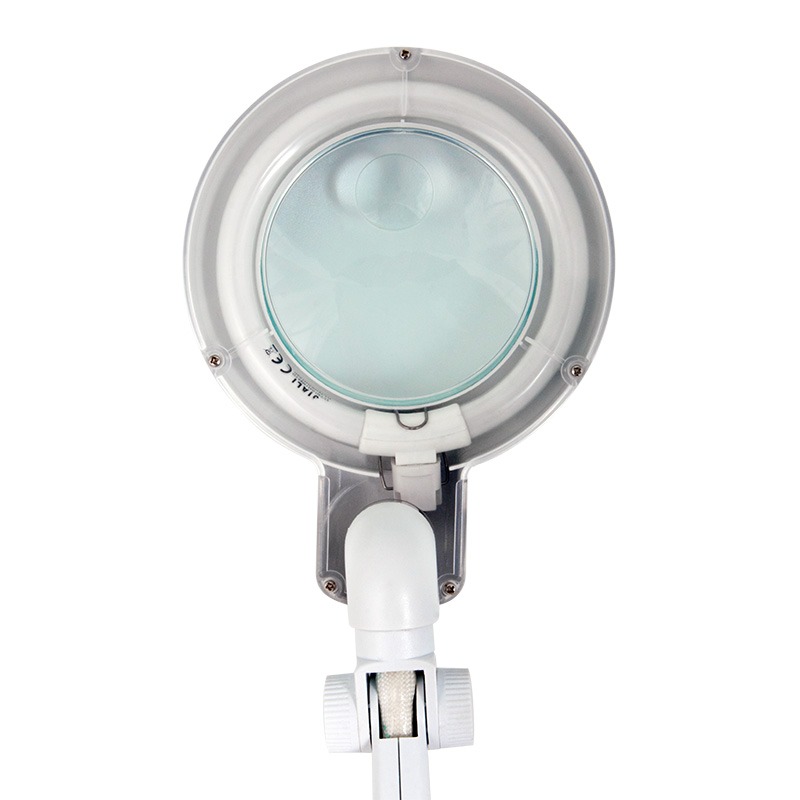 Лупа настольная REXANT предназначена для визуального увеличения различных мелких деталей или предметов. Используется во многих областях жизнедеятельности человека. Форма изделия – круглая, цвет – белый. Оптическая сила линзы – 5 диоптрий, что обеспечивает увеличение в 2,25 раза. Размер линзы: 127мм. Такое устройство станет полезным для любого специалиста, который выполняет работы, требующие высокой точности и аккуратности. <br> Устройство имеет следующие конструктивные преимущества: стеклянная линза, бестеневая всесторонняя подсветка, модернизированный пантографический механизм, рабочий радиус регулировки 100 см, струбцинное крепление, экономичное энергопотребление, встроенный электронный блок управления, благодаря которому лампа излучает ровный свет без мерцания.<br> 56 SMD светодиодов (LED), расположенных по кругу, обеспечивают ярое свечение.