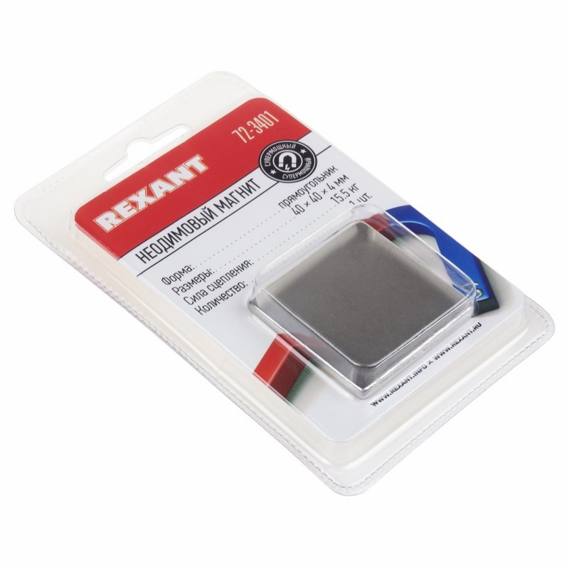 Неодимовый магнит прямоугольник 40х40х4 мм сцепление 15,5 кг Rexant
