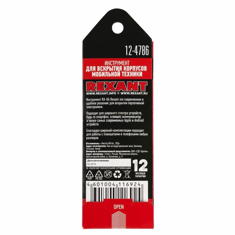 Инструмент REXANT RA-06 предназначен для быстрого и безопасного вскрытия корпусов смартфонов, планшетов, ноутбуков, коммуникаторов, PlayStation. <br> Лопатка выполнена из высококачественной стали. Подходит для ремонта устройств, изготовленных из крепких, жестких материалов. С одной стороны инструмента располагается плоская широкая лопатка, с другой – заостренная.<br> Применим для продукции Apple и смартфонов, работающих на платформе Android.