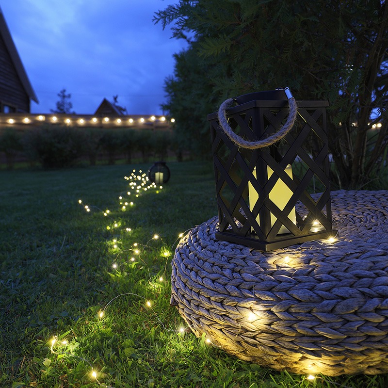 Декоративный фонарь в плетеном корпусе черного цвета работает на солнечной батарее, которая заряжает аккумулятор емкостью 200 мАч. 1 диод теплого белого свечения экономично расходует заряд и не нагревается. Полностью заряженного элемента питания достаточно для 8 часов непрерывной работы. Декоративный фонарь станет прекрасным украшением сада и интерьера: с его помощью можно оригинально украсить веранду, беседку, спальню, гостиную, обеденную зону, детскую комнату. Для подвешивания предусмотрена петля в верхней части корпуса.