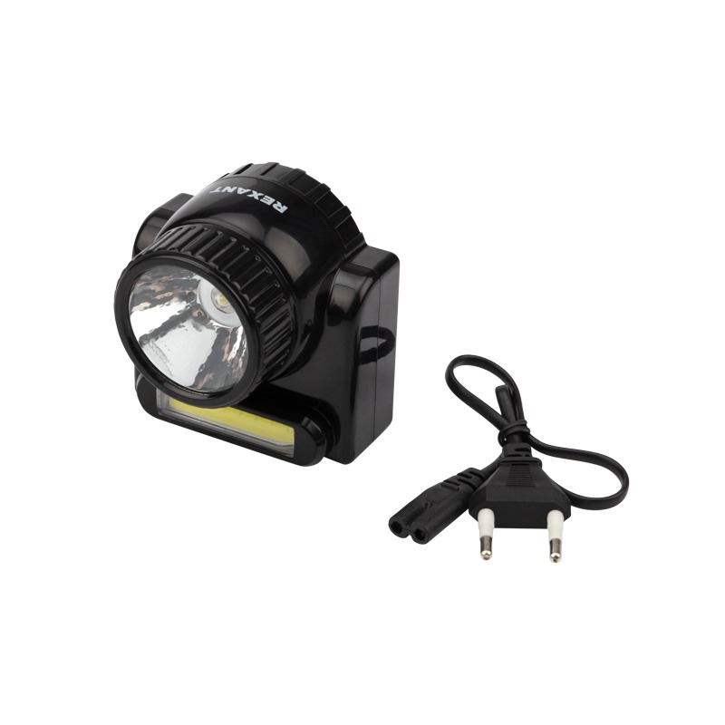 Фонарь налобный, двухрежимный, поворотный, с евровилкой, зарядка от сети 220В REXANT
