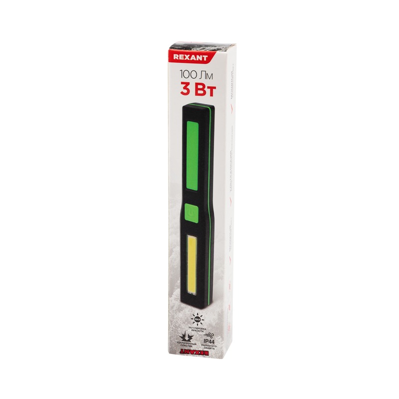 Рабочий универсальный фонарь с мощным СОВ диодом нового поколения REXANT предназначен в качестве осветительного прибора в различных помещениях и на улице.