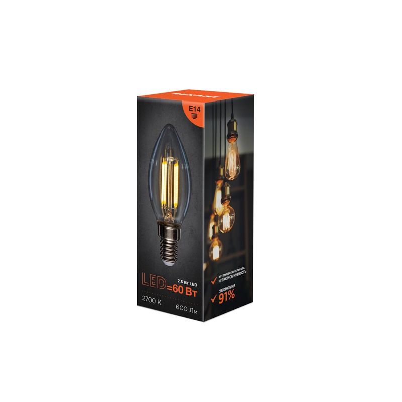 Филаментная лампа имеет форму, имитирующую пламя свечи, за счет чего и получила свое название. Обеспечивает качественное основное и дизайнерское освещение различных помещений. За счет распространения света во всех направлениях имеет широкий угол освещения и может быть установлена любым способом.