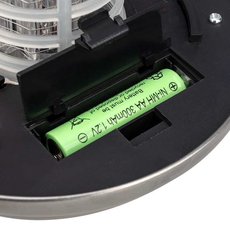 Садовый светильник заряжается от солнечной панели на крышке и имеет встроенный аккумулятор, от которого работает ночью. Отсутствие внешних проводов делает данный светильник простым в установке и мобильным в перемещении. Светильник работает от встроенного аккумулятора до 10 часов.