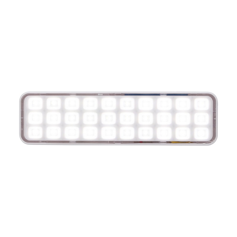 Аккумуляторный светильник непостоянного действия используется для подсветки путей эвакуации и рабочих зон при отключении питания.<br> Оснащен режимами: 30%, 100% и кнопкой «тест».<br> Является универсальным решением для аварийных систем освещения.<br> Источником света в светильнике являются светодиоды, которые дают преимущество в сравнении с применяемыми, в настоящее время, люминесцентными лампами и лампами накаливания.<br> Светильник имеет настенное крепление.<br> Встроенный аккумулятор сохраняет работоспособность до 3 часов без подзарядки.<br> <br> Способ крепления: настенный<br> Номинальное напряжение: АС230 В, 50/60 Гц<br> Мощность: 3 Вт<br> Степень защиты: IP20<br> Время работы от аккумулятора: 180 минут<br> Материал корпуса: пластик<br> Источник света: LED<br> Цветовая температура: 6500 К<br> Размеры светильника: 54,2*27,5*203мм<br> Класс электробезопасности II