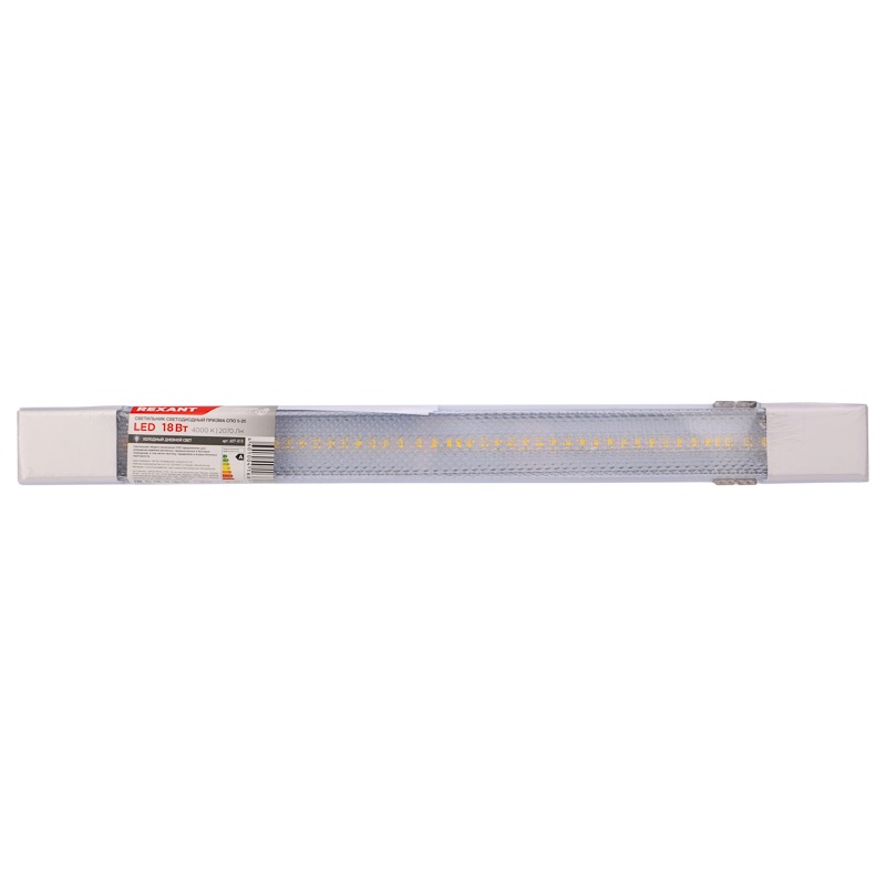 Светильник СПО4-20 IP20, 18w, 6500K, 0,6 м арт.607-013<br> <br> Большая гарантия - 2 года<br> Широкий ассортимент моделей<br> Мощность 18 Вт и 36 Вт<br> Широкий ассортимент цветностей 4000К и 6500К<br> Рассеиватели типа ОПАЛ и ПРИЗМА<br> Модели для эксплуатации в помещении IP20<br> Модели для эксплуатации на улице и во влажных местах IP65<br> Качественные материалы - поликарбонат, сталь.<br> Отсутствие пульсации<br> Электромагнитная совместимость<br> Эффективность более 110Лм/Вт<br> Монтажные скобы в комплекте<br> <br> Для подключения к электросети рекомендуем воспользоваться нашими товарами*:<br> <br> 06-0204-B10 Соединительная клемма многоразовая, 3-х проводная, прозрачная (0,08-4 мм²), (10шт. ) REXANT<br> 11-1115 Шнур сетевой, вилка плоская с выключателем, без розетки, кабель 2x0.5 мм², длина 1,8 метра, 2.5 A, белый REXANT<br> <br> * - монтаж и демонтаж изделия производить строго при отключенном напряжении питающей сети квалифицированным специалистом.<br> <br> Тип источника света: встроенный светодиодный модуль (SMD)<br> Тип светильника: светильник общего назначения СПО4-20<br> Материал корпуса: сталь<br> Цвет корпуса: белый<br> Материал плафона или рассеивателя: поликарбонат опаловый/матовый<br> Тип источника питания: встроенный с ЭМС<br> Тип монтажа: накладной посредством монтажных клипс (в комплекте)<br> Номинальная мощность, Вт: 18<br> Номинальное напряжение / номинальная частота, Гц, В: AC 230В / 50Гц<br> Диапазон рабочих напряжений, В: 185В…265В<br> Коэффициент мощности, cosϕ: 0,9<br> Номинальная сила тока, А: 0,09<br> Световой поток, Лм: 1890 <br> Световая отдача, Лм/Вт: 105<br> Класс энергоэффективности: A<br> Цветовая температура, К: 6500<br> Индекс цветопередачи, Ra: 80<br> Угол рассеивания, град: 120<br> Тип кривой силы света: Д<br> Класс светораспределения: прямого света<br> Классификация по материалу опорной поверхности, на который рассчитан светильник: F- из нормально воспламеняющегося материала<br> Минимальное расстояние до освещаемого объекта, м: 1<br> Классификация по степени защиты от попадания пыли, твердых частиц и влаги, IP: 20<br> Степени защиты, обеспечиваемой оболочками от наружного механического удара (код IK код/ энергия удара, Дж): нет<br> Защита от поражения электрическим током, класс: I<br> Светильники не предназначенные для покрытия теплоизолирующим материалом: Не предназначен<br> Заменить треснувший защитный экран: Заменить<br> Диапазон рабочих температур, С: `-20...+45 °C<br> Максимальная влажность воздуха при 25 C, %: 98<br> Шлейфовый способ присоединения (прямое питание): нет<br> Количество светильников подключаемых посредством шлейфового способа монтажа: 0<br> Длина, мм: 600<br> Ширина, мм: 63<br> Высота или глубина, мм: 23<br> Вес, кг: 0,2025<br> Объём, метр кубический: 0,0008