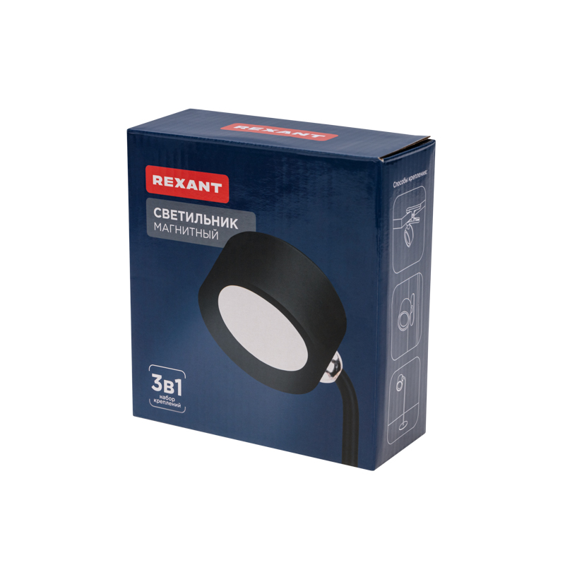 Светильник магнитный переносной с 3 креплениями, круглый, черный REXANT