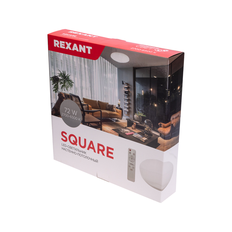 Размеры (ДхШхВ): 370х370х65 мм Настенно-потолочный светильник REXANT предназначен для общего и декоративного освещения собственных и бытовых помещений: холлов, офисов, коридоров, магазинов и т. д.