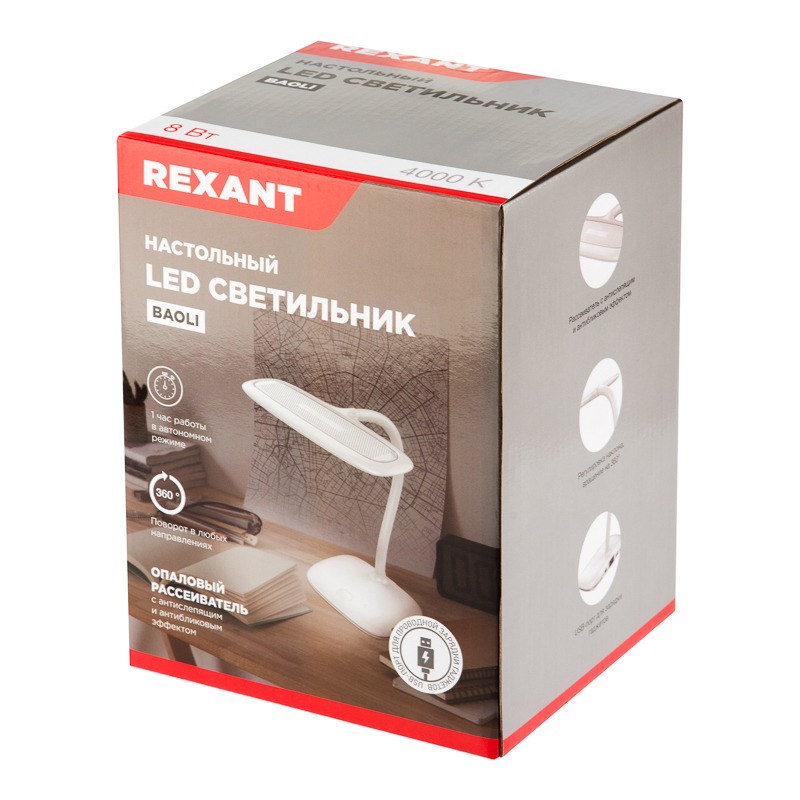 Светильник настольный REXANT Baoli, USB-зарядка устройств, вращение 360°