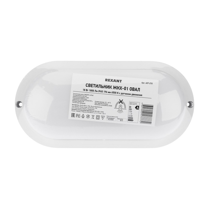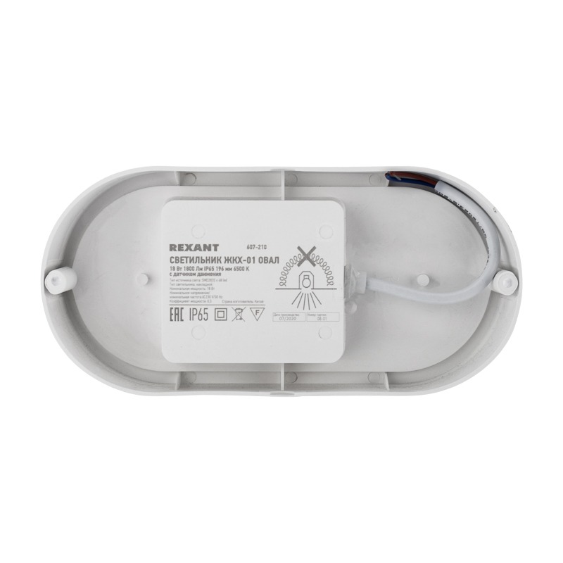 Светильник светодиодный пылевлагозащищенный REXANT ЖКХ-01 овал 18 Вт 1800 Лм IP65 193х93х37 мм 6500 K с микроволновым датчиком движения