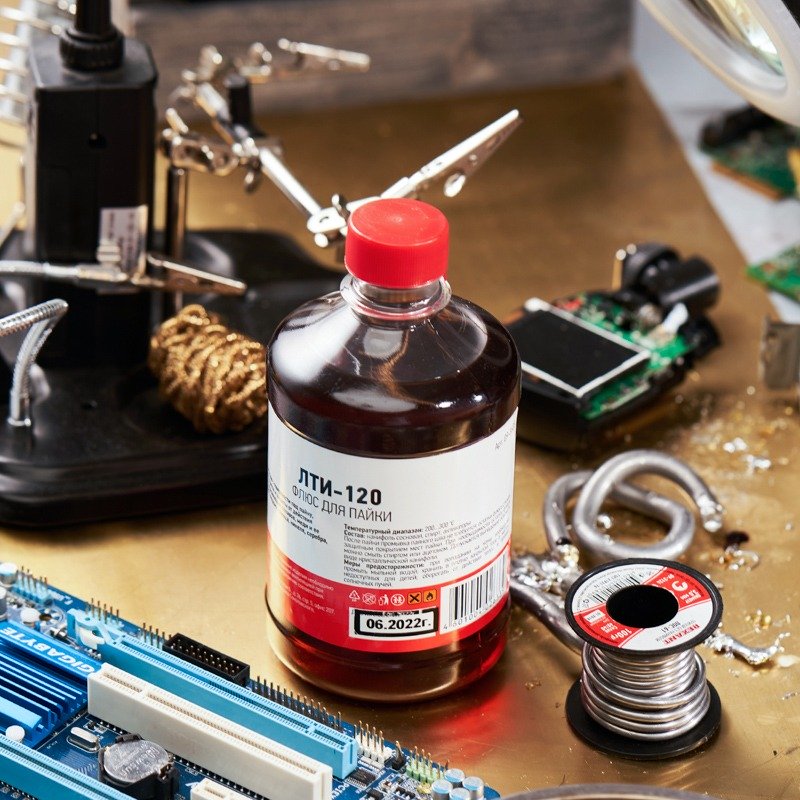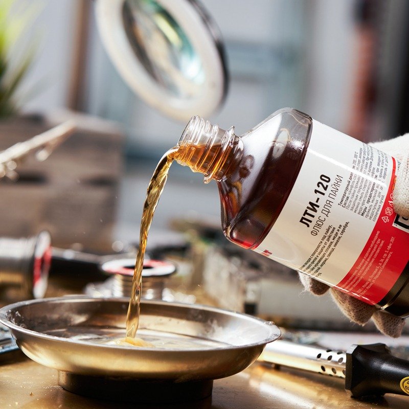 Флюс для пайки ЛТИ-120 предназначен для удаления оксидов с поверхности под пайку, улучшения растекания жидкого припоя и защиты от действия окружающей среды при пайке нержавеющих сплавов, меди и её сплавов, оцинкованных изделий, нихрома, свинца, никеля, серебра, кадмия, палладия, висмута. Данный низкотемпературный флюс применяется при пайке деталей или поверхностей припоями оловянно-свинцовой группы в температурном диапазоне +200...+300℃. После пайки смывка не требуется, более того, остатки флюса служат защитным покрытием мест пайки. При необходимости его возможно растворить спиртом или ацетоном.