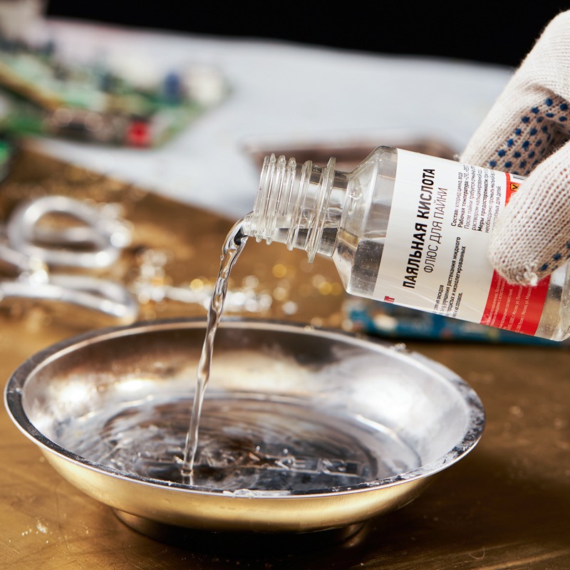 Флюс для пайки паяльная кислота 100 мл (масленка) REXANT предназначен для удаления оксидов с поверхности под пайку, улучшения растекания жидкого припоя при пайке углеродистых и низколегированных сталей, меди, никеля и их сплавов. Это одно из самых распространенных средств для пайки.