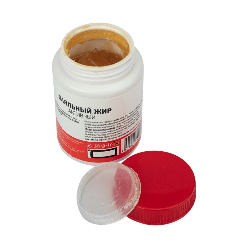 Паяльный жир активный REXANT предназначен для удаления оксидов с поверхности под пайку, улучшения растекания жидкого припоя при пайке радио и электротехнических устройств. Главным образом, жир хорошо держится на различных металлических контактах, тем самым в отличие от жидкого флюса, есть возможность точного дозирования, и высокой скорости нанесения на большое количество мест паек.