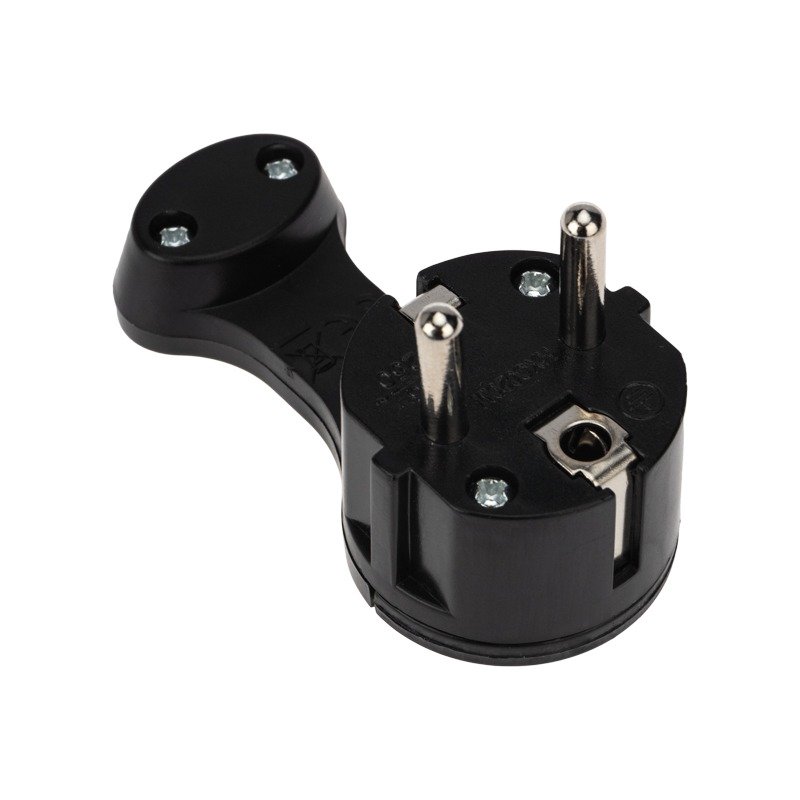 Вилка Евро угловая с з/к 16 А плоская за шкаф черная REXANT