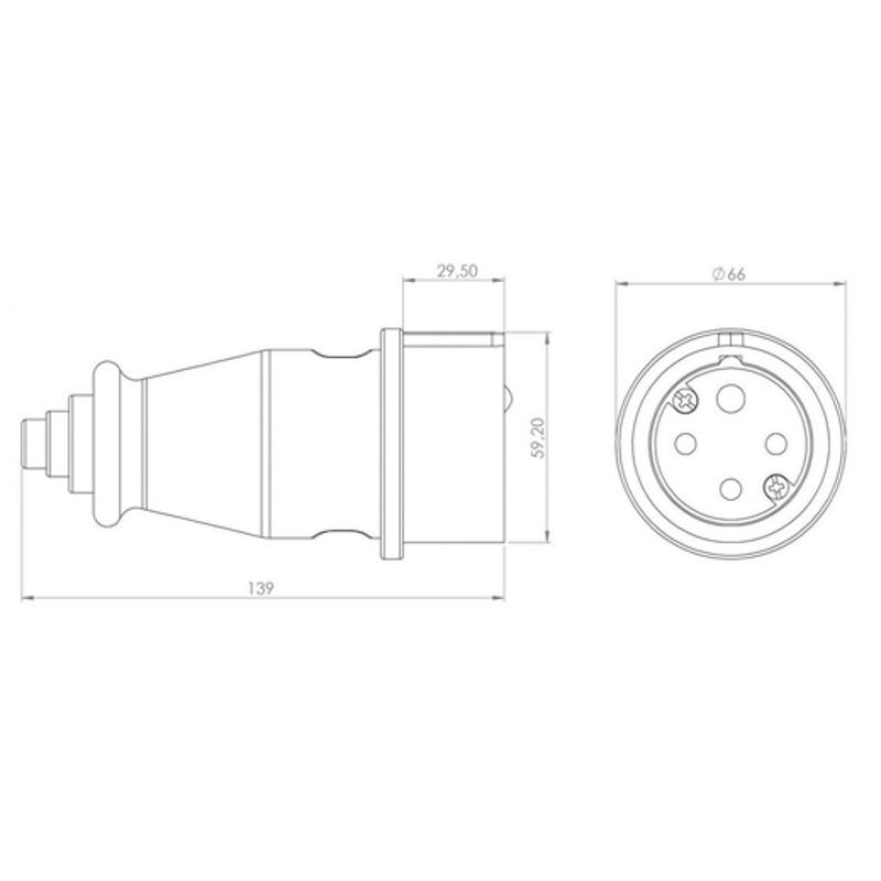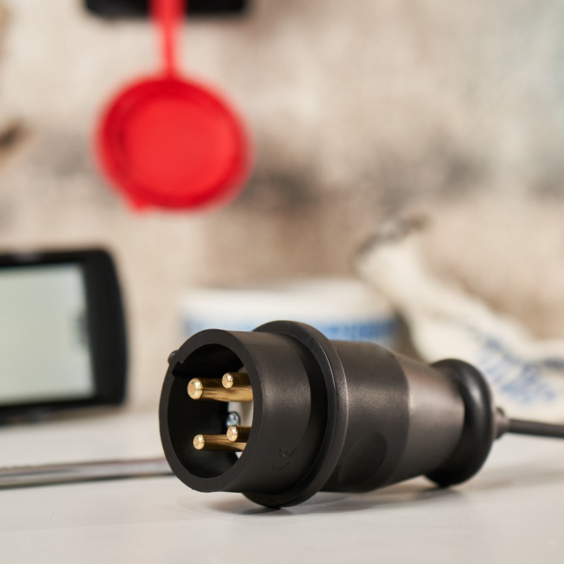 Вилка переносная влагозащищенная 3Р+РЕ, 32 А, IP44 каучук, черная REXANT
