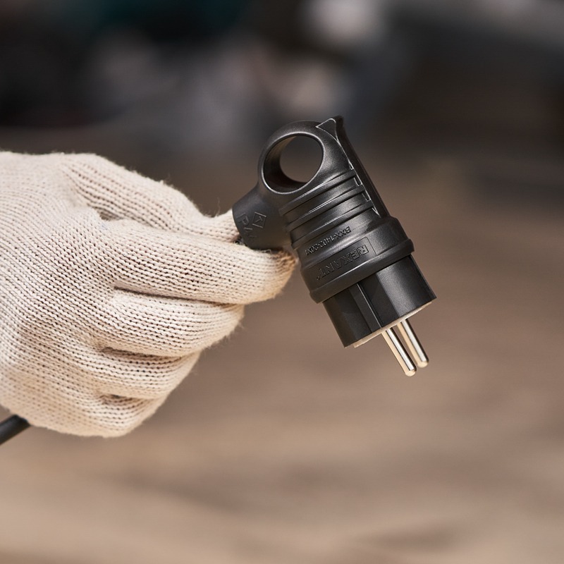 Вилка угловая влагозащищенная с кольцом, с/з, 16 А, IP44 каучук REXANT