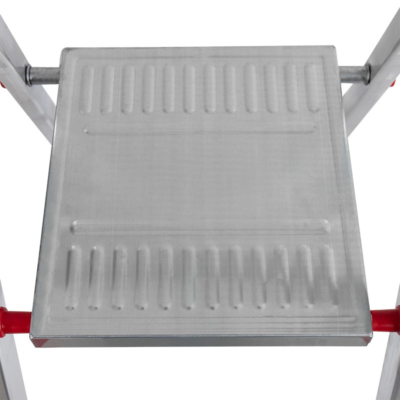 Алюминиевая стремянка REXANT применяется как в строительной, коммунальной деятельности, так и в быту, дома, на даче, в гараже, саду. Позволяет быстро и безопасно произвести работы на высоте. Упрочненное крепление ножек предотвращает их выпадение, а пластиковое покрытие исключает скольжение и защищает полы от царапин. Специальное соединительное ушко обеспечивает устойчивость конструкции и ее надежную фиксацию в рабочем положении. Материалы защищают изделие от поражения коррозией и негативного воздействия окружающей среды. Стремянка из усиленного профиля оснащена противоскользящим рифлением на ступеньках; не занимает много места. Изготовлена в России.<br> <br> Характеристики:<br> Количество ступеней: 4<br> Высота площадки: 82 см<br> Рабочая высота: 290 см<br> Ширина: 44 см<br> Длина: 153 см<br> Вес: 3,6 кг<br> Максимальная нагрузка: 150 кг<br> Материал: алюминий, ABS-пластик<br> <br> Преимущества:<br> Выполнена из прочных долговечных материалов<br> Надежная фиксация рабочих положений<br> Широкие удобные ступеньки с прочным заклепочным креплением