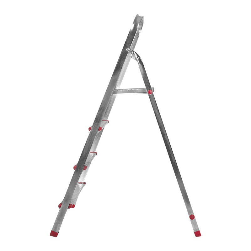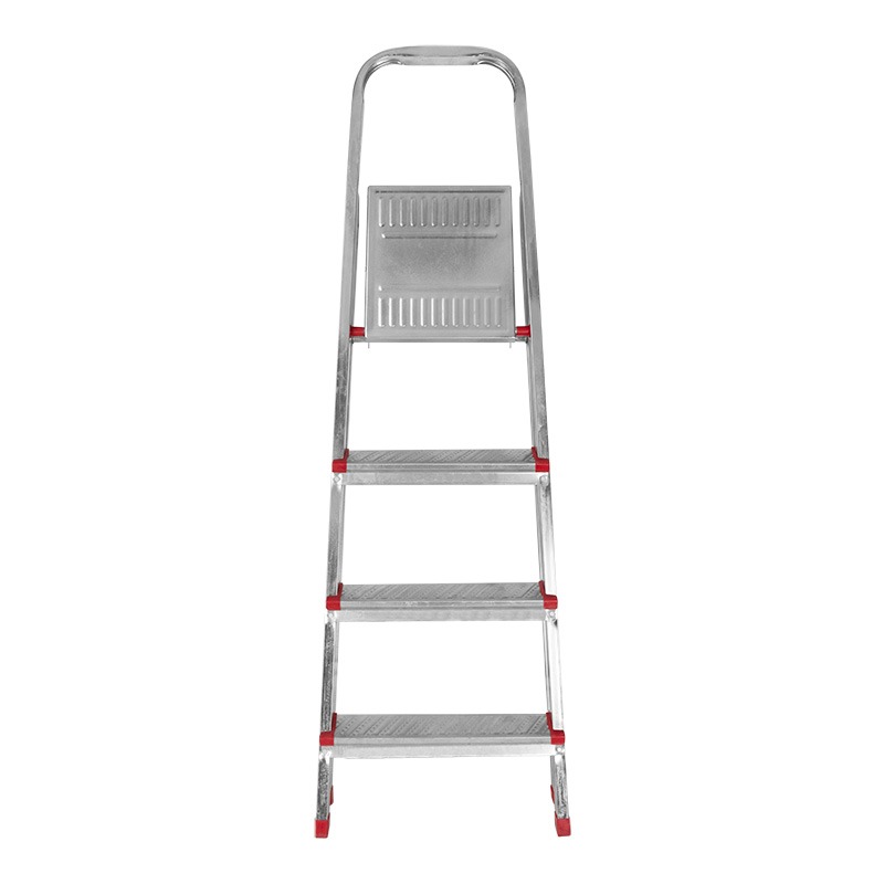 Стремянка металлическая состоит из 4 ступенек, применяется как в строительных целях, так и в быту, дома, на даче, в гараже и саду. Специальное соединительное ушко обеспечивает устойчивость конструкции и надежную фиксацию оборудования в рабочем положении. Ножки лестницы изготовлены в пластиковом покрытии; это предотвращает скольжение и защищает напольное покрытие от царапин, а упрочненное крепление ножек предотвращает их выпадение. Гальваническое покрытие гарантирует устойчивость к коррозии и защищает от негативного воздействия окружающей среды. Стремянка из усиленного профиля с 4 широкими ступенями с противоскользящим рифлением не занимает много места. Использование качественных материалов позволяет нагружать стремянку массой до 150 кг.