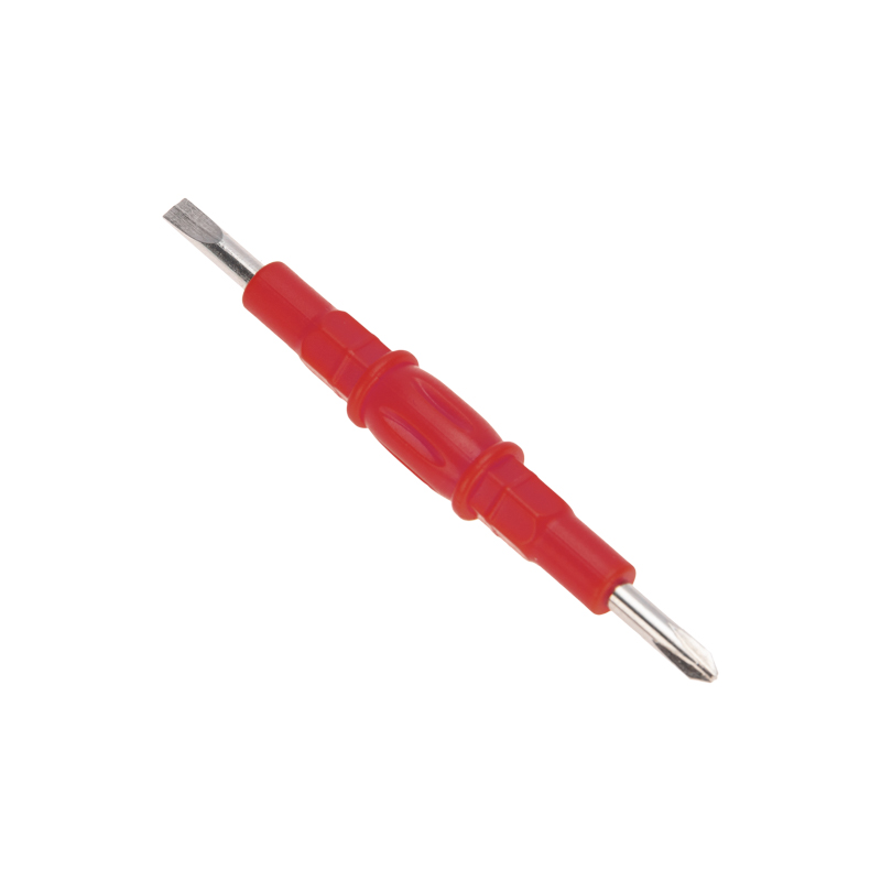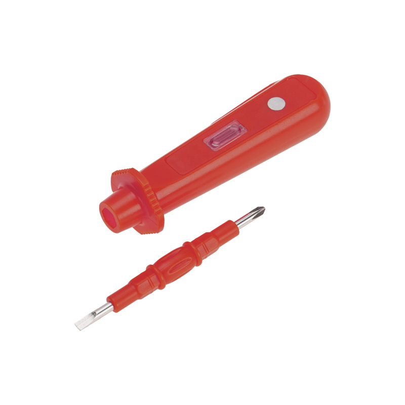 Тестер оснащен переставным жалом, которое может быть использовано в двух вариантах: крестообразное или шлицевое. Это позволяет оператору выбрать подходящий тип жала в зависимости от требований конкретной ситуации. Сталь высокой закалки (50HRC) позволяет использовать тестер как отвертку. Наличие намагниченных наконечников обеспечивает удобство при удержании винтов, что особенно полезно при работе с клеммными колодками и светильниками.