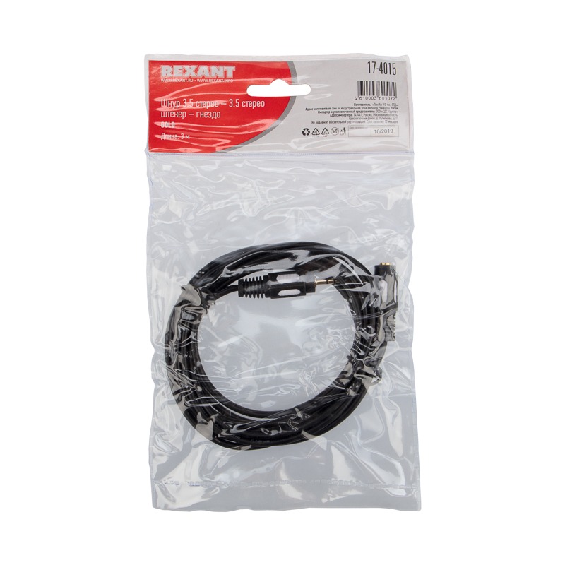 Шнур 3.5 Stereo Plug - 3.5 Stereo Jack 3 м (GOLD) REXANT предназначен для передачи аналогового аудиосигнала и широко применяется в любых акустических системах. С одной стороны шнура располагается штекер разъема 3.5 Stereo, а с другой — гнездо разъема 3.5 Stereo.