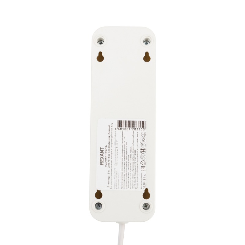 Удлинитель REXANT 3 гнезда, 5 м, 2х0.75 мм², б/з, белый (Сделано в России)