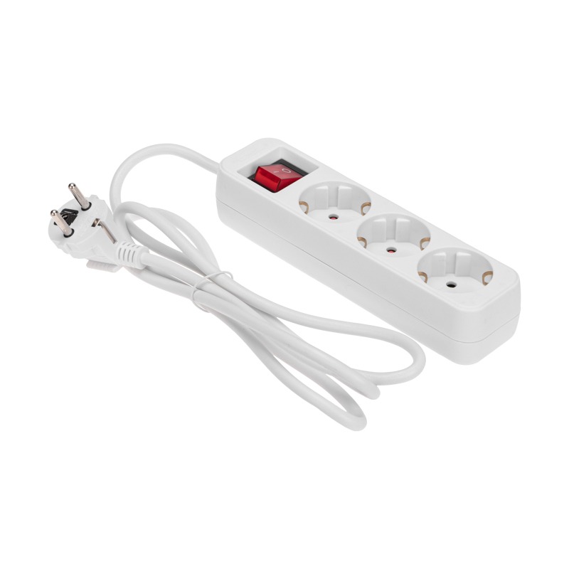 Удлинитель REXANT предназначен для подключения электрических приборов, когда недостаточно стандартной длины шнура для питания от стационарных розеток. <br> Наличие 3 гнезд позволяет одновременно подключить несколько электроприборов. Каждое гнездо имеет заземление, что гарантирует безопасность при использовании.<br> Универсальные розетки обеспечивают возможность подключения вилок как российского, так и европейского стандарта.<br> Удлинитель оснащен защитными шторками, которые предназначены для предотвращения случайного попадания пыли, влаги или посторонних предметов в гнезда удлинителя, что способствует долговечности самого устройства и подключенных к нему приборов, а также обеспечивает защиту от поражения электрическим током.<br> На корпусе устройства располагается выключатель, который позволяет при необходимости легко выключить или выключить все устройства одновременно.<br> Мощность – 3500Вт. Сечение провода – 3х1,0мм². Тип вилки – угловая. Цвет удлинителя – белый.