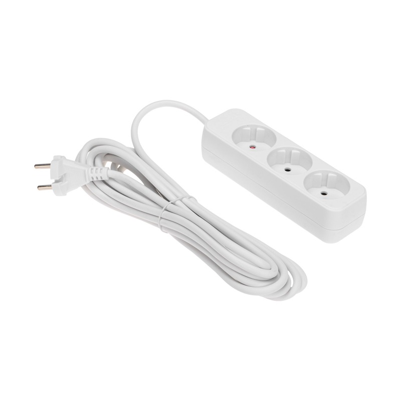 Удлинитель REXANT предназначен для подключения электрических приборов, когда недостаточно стандартной длины шнура для питания от стационарных розеток. <br> Наличие 3 гнезд позволяет одновременно подключить несколько электроприборов. Универсальные розетки обеспечивают возможность подключения вилок как российского, так и европейского стандарта.<br> Удлинитель оснащен защитными шторками, которые предназначены для предотвращения случайного попадания пыли, влаги или посторонних предметов в гнезда удлинителя, что способствует долговечности самого устройства и подключенных к нему приборов, а также обеспечивает защиту от поражения электрическим током.<br> Мощность – 2200Вт. Сечение провода – 2х1,0мм². Тип вилки – прямая. Цвет удлинителя – белый.