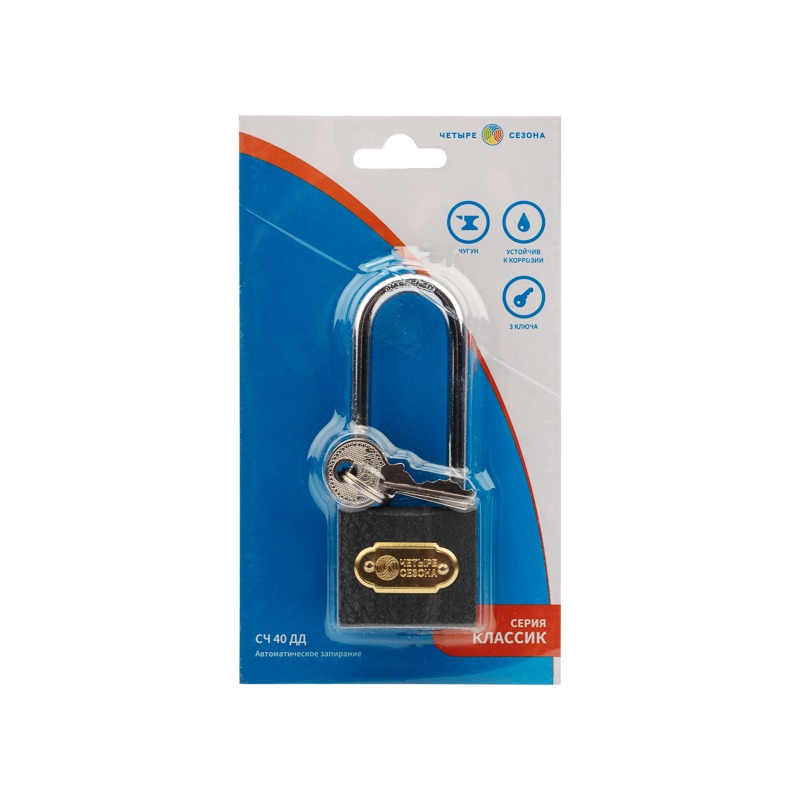 Замок навесной серия «Чугун» 40 мм длинная дужка ЧЕТЫРЕ СЕЗОНА