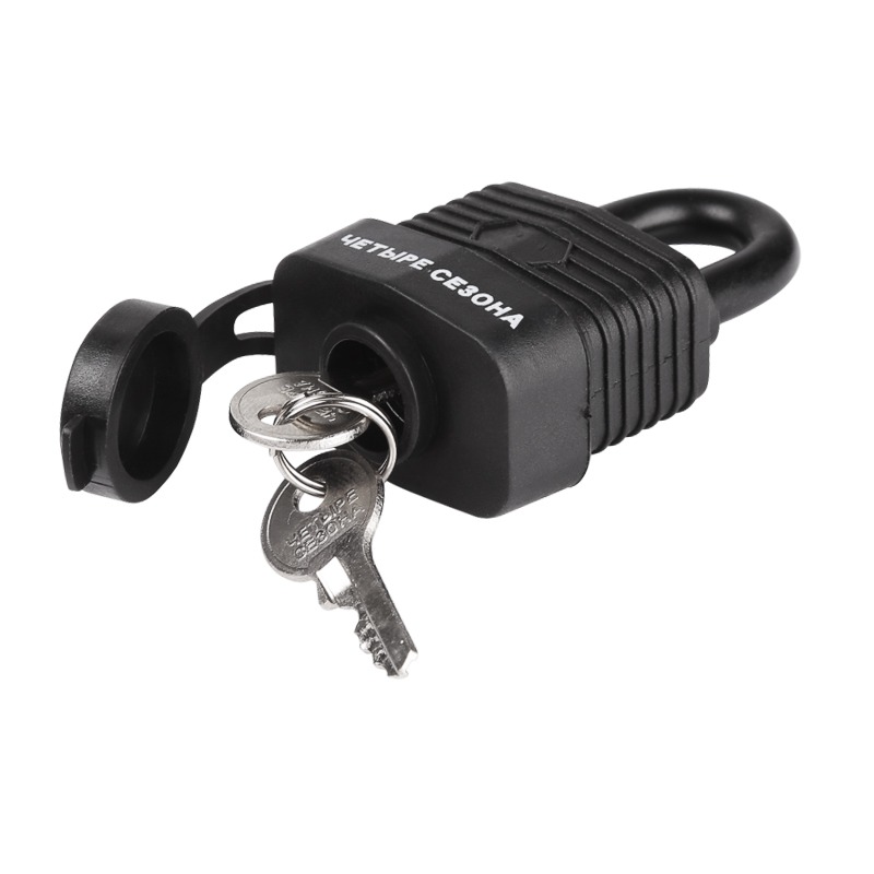 В комплекте с замком идет 3 ключа, поэтому при потере одного вам не нужно беспокоиться. Специальная прорезиненная оболочка препятствует проникновению влаги внурь механизмов замка.