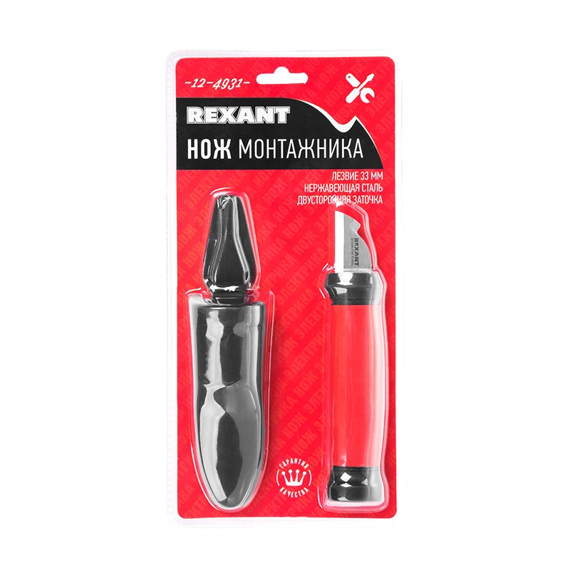Нож монтажника, нержавеющая сталь, двухсторонняя заточка, лезвие 33 мм REXANT
