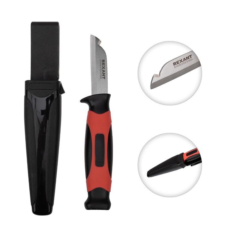 Нож монтажника с чехлом лезвие 67мм REXANT