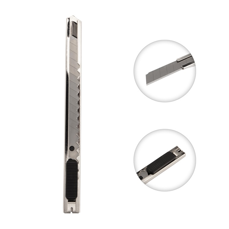 Нож REXANT с выдвижным сегментированным отламывающимся лезвием — отличный помощник для разрезания различных материалов: пластика, картона, бумаги.<br> Корпус ножа выполнен из металла и оснащен клипсой, благодаря которой инструмент можно фиксировать на одежде. Сегментированное лезвие шириной 9 мм изготовлено из высококачественной инструментальной стали. Когда крайний сегмент затупляется, его можно отломить и продолжить использовать инструмент. <br> Замена лезвия быстро и просто осуществляется вручную через хвостовую часть ножа.