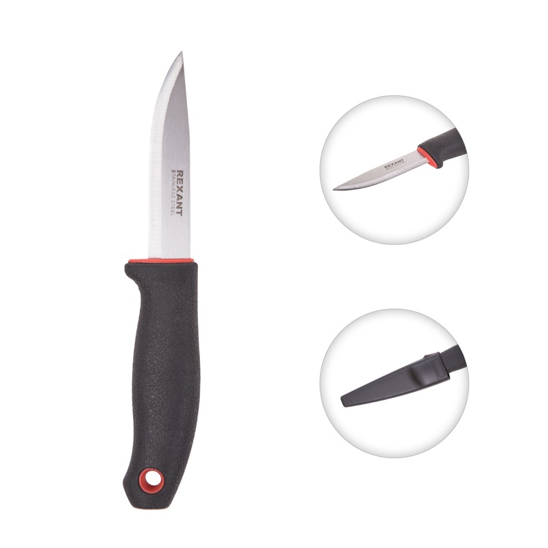 Нож строительный универсальный REXANT предназначен для проведения отделочных и монтажных работ. Пригодится в походах, на рыбалке, во время туризма.<br> Усиленное лезвие выполнено из качественной стали, подходит для работы с толстыми материалами. Прецизионная заточка обеспечивает чистоту и точность реза. <br> Удобная противоскользящая пластиковая рукоятка создает комфорт и повышенную безопасность при работе. <br> Нож укомплектован пластиковыми ножнами для удобного хранения и безопасной транспортировки. На корпусе чехла предусмотрена клипса-зажим, которая позволяет закреплять инструмент на одежде. <br> Нож обладает повышенным рабочим ресурсом.