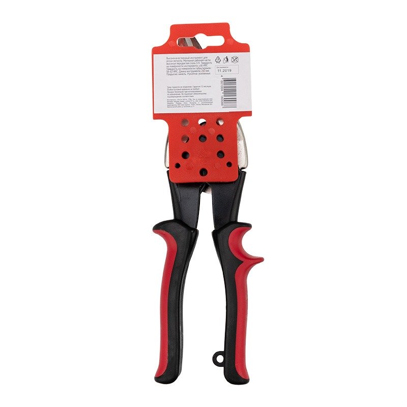 Ножницы REXANT предназначены для правого реза металла толщиной до 1,2 мм и нержавеющей листовой стали толщиной 0,7 мм. <br> Хромованадиевый сплав, из которого изготовлен инструмент, обладает такими свойствами, как прочность, жесткость и устойчивость к износу. Во время прокаливания сплав менее подвержен деформациям и потере первоначальной формы, чем другие типы инструментальной стали. Никелевое покрытие защищает ножницы от образования ржавчины, тем самым продлевает их срок службы.<br> Ножницы оснащены усиленными двухкомпонентными рукоятками, которые имеют специальную форму и обеспечивают дополнительный комфорт при работе.<br> Для удобства хранения и транспортировки предусмотрен запорный механизм, который удерживает режущие кромки ножниц в закрытом положении.
