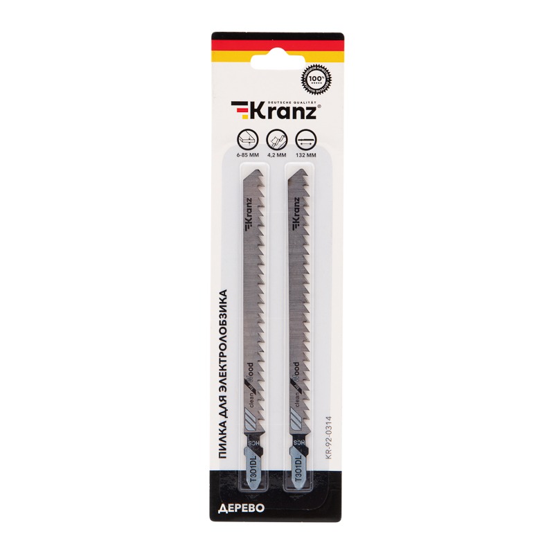 Пилка для электролобзика по дереву T301DL 132 мм 6 зубьев на дюйм 6-85 мм (2 шт. /уп. ) Kranz