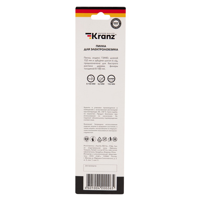 Пилка для электролобзика KRANZ с улучшенной заточкой зубьев предназначена для работ по дереву. Она отлично подходит для всех марок электролобзиков с креплением для Т-образного хвостовика и надежно фиксируется в патроне.