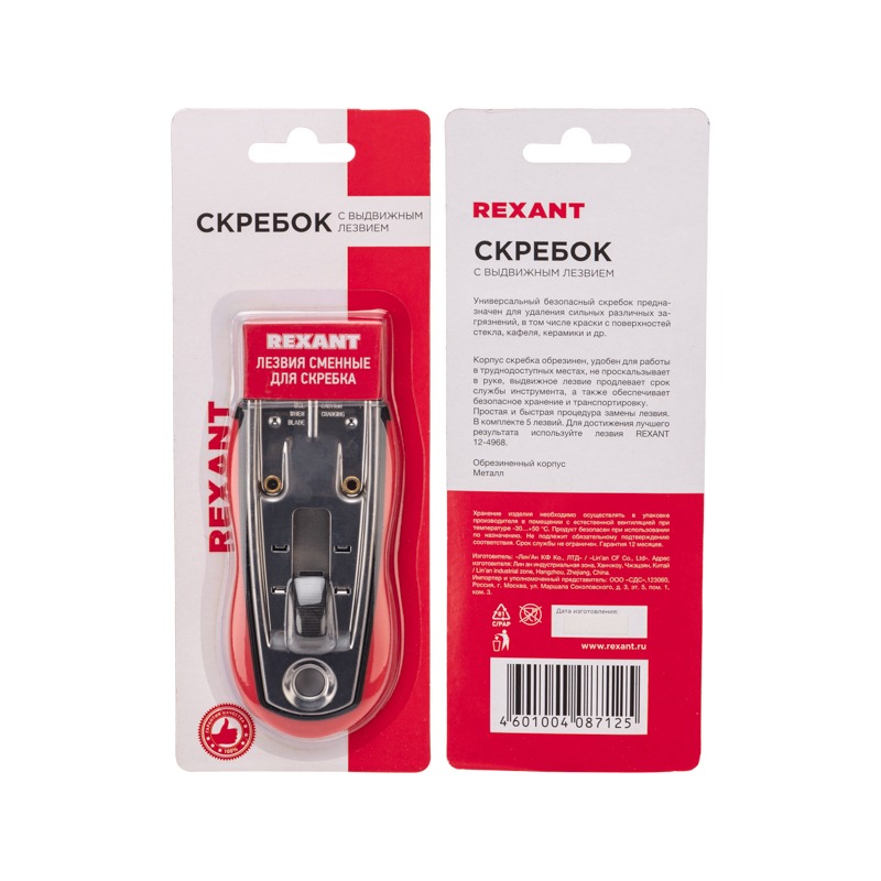 Универсальный безопасный скребок предназначен для удаления различных загрязнений, в том числе и краски с поверхностей из стекла, кафеля, керамики и т.д.<br> Корпус скребка выполнен с прорезиненными краями, не проскальзывает в руке. Инструмент удобен для работы в труднодоступных местах.<br> Выдвижное лезвие продлевает срок службы инструмента, а также обеспечивает безопасное хранение и транспортировку. <br> Изделие отличается простой и быстрой заменой лезвия. <br> В комплекте 5 лезвий.