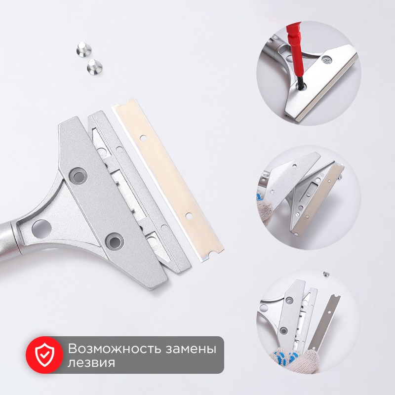 Скребок применяется для очистки поверхностей от различных загрязнений, в том числе краски. Подойдет для любых ремонтно-строительных работ, для удаления обоев со стен, клея с напольной плитки, напольных покрытий, различных эпоксидных, пластиковых и прочих материалов. <br> Скребок изготовлен из стали. Лезвие надежно фиксируется.<br> Прочная металлическая ручка длиной 40 см, покрытая противоскользящим пластиком, позволяет работать в труднодоступных местах. <br> Возможность замены лезвий обеспечивает долгий срок службы инструмента.
