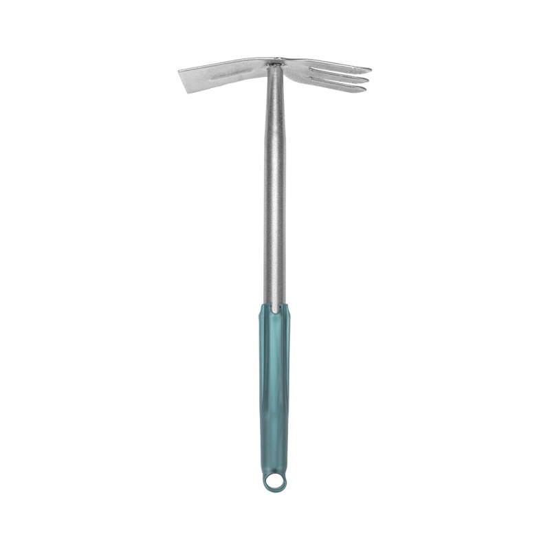 Мотыжка используется при выполнении работ в садах, огородах, цветниках и т.д. Применяется для рыхления почвы, формирования рядов для посева, прополки сорняков и многого другого. <br> Рабочая часть и рукоятка выполнены из метала с порошковым покрытием, благодаря чему грабли обладают долговечностью, прочностью и надежностью. Конструктивно рабочая часть состоит из лопатки и 3 прямых зубцов. <br> Cверху рукоятка покрыта пластиком, что препятствует скольжению инструмента в руке и создает комфорт при выполнении работ. <br> Также в рукоятке предусмотрено отверстие, позволяющее размещать мотыжку на вертикальных поверхностях, что обеспечивает удобство хранения и позволяет экономить место на рабочем пространстве.<br> Длина: 60 мм. Ширина:160 мм. Высота: 320 мм.