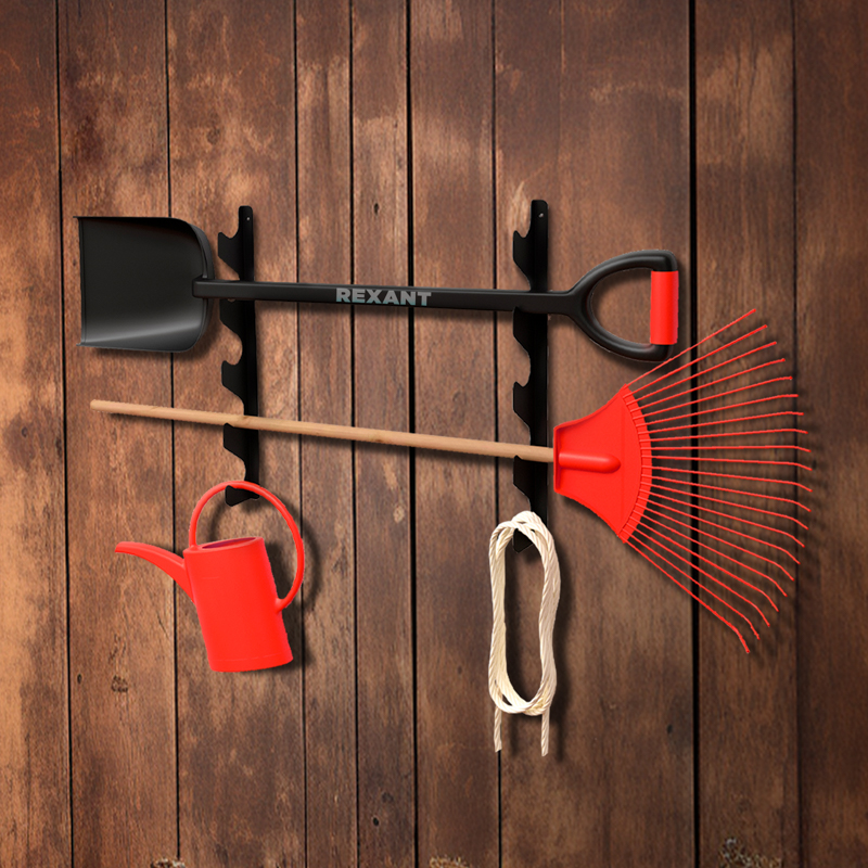 Держатель для хранения садового инвентаря настенный, черный REXANT