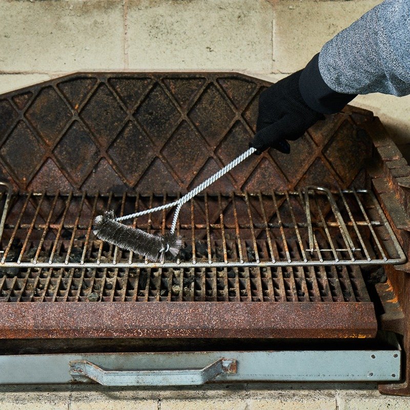 Она предназначена для чистки мангалов, барбекю, решеток «гриль», шампуров и других металлических поверхностей. Жесткая щетина эффективно удаляет