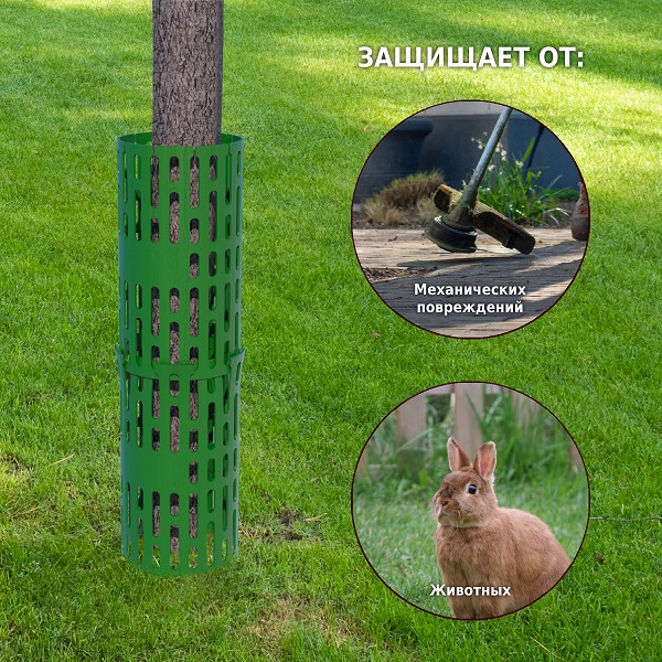 Защита стволов деревьев, кустарников и цветов предназначена для защиты стволов растений от триммеров, грызунов и других случайных повреждений. Также может использоваться как кустодержатель для ягодных кустарников (смородина, крыжовник) и цветов (пионы, гортензии и др.).<br>