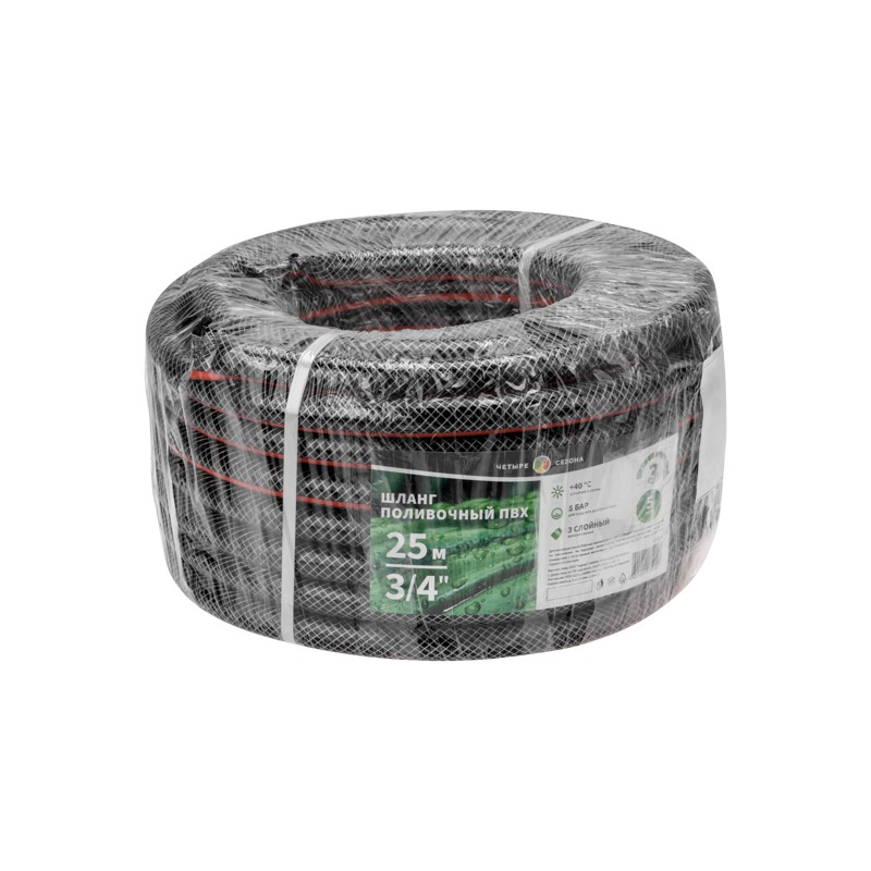 Шланг поливочный ПВХ 3-х слойный армированный 3/4" 25м Стандарт ЧЕТЫРЕ СЕЗОНА