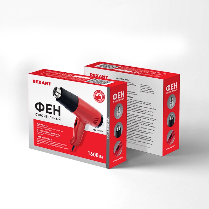 Фен строительный REXANT, 230 В/1600 Вт "STANDARD"