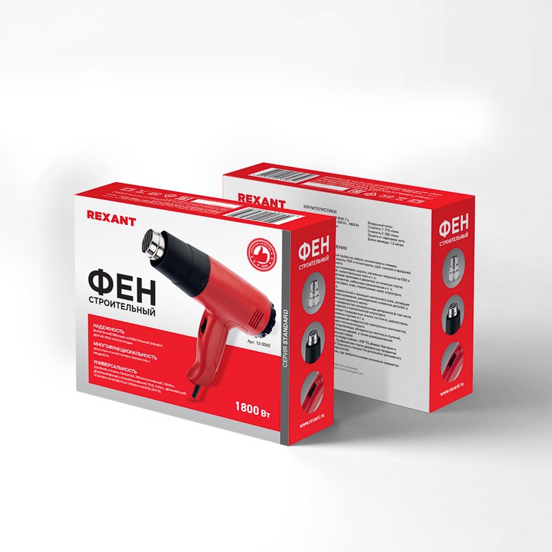 Фен строительный REXANT, 230 В/1800 Вт "STANDARD" с терморегулятором