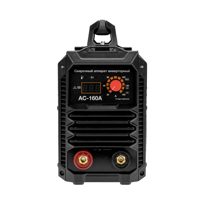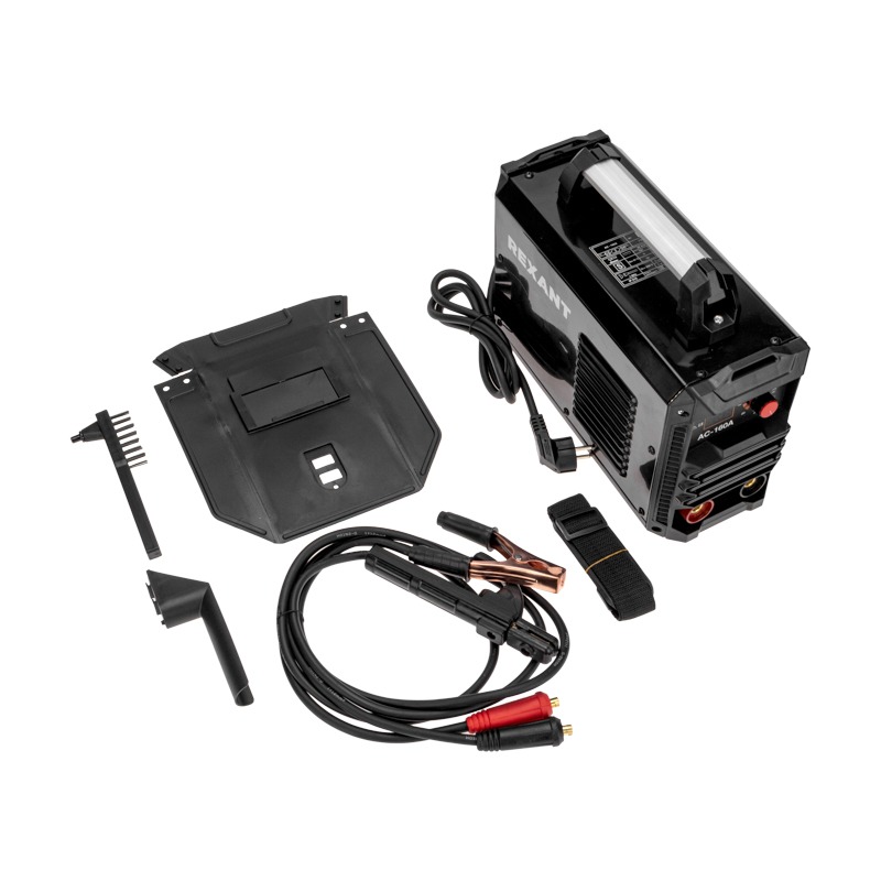 Инверторный сварочный аппарат REXANT АС-160А представляет собой компактный, надежный и удобный прибор для сварки MMA. Подходит для бытового и профессионального применения - для работы на строительных объектах, в гараже, в мастерской.<br> Аппарат работает от сети 220 В. Данная модель имеет компактный корпус.<br> <br> Характеристики:<br> Напряжение питающей сети:220 +- 15%<br> Частота питающей сети: 50-60 Гц<br> Потребляемая энергия: 4 кВт<br> Сварочный ток MMA: 20-160 А<br> Рабочее напряжение ММА: 21,2-25,6<br> Напряжение холостого хода MMA: 51 В<br> Потребление без нагрузки: 20 Вт<br> Рабочий цикл: 60%<br> Коэффициент мощности: 73%<br> КПД: 85%<br> Класс изоляции: F<br> Класс защиты: IP 21S<br> Масса, кг: 3,5<br> Функция поджига повышенным током (Антиприлипание) ДА<br> Функция форсирования силы дуги (Горячий старт) ДА<br> Защита от перепадов напряжения ДА<br> <br> Комплектация:<br> Инверторный сварочный аппарат - 1 шт.<br> Кабель длиной 1,8 метра с электрододержателем - 1 шт.<br> Кабель длиной 1,2 метра с зажимом массы - 1 шт.<br> Инструкция по эксплуатации -1 шт.<br> <br> Преимущества:<br> Отсутствие брызг при сварке.<br> Антиприлипание электродов.<br> Плавная регулировка сварочного тока.<br> Легкий старт (легкий поджиг дуги)<br> Поддерживает обратную и прямую полярность при сварке.<br> Работает с электродами 2-4 мм