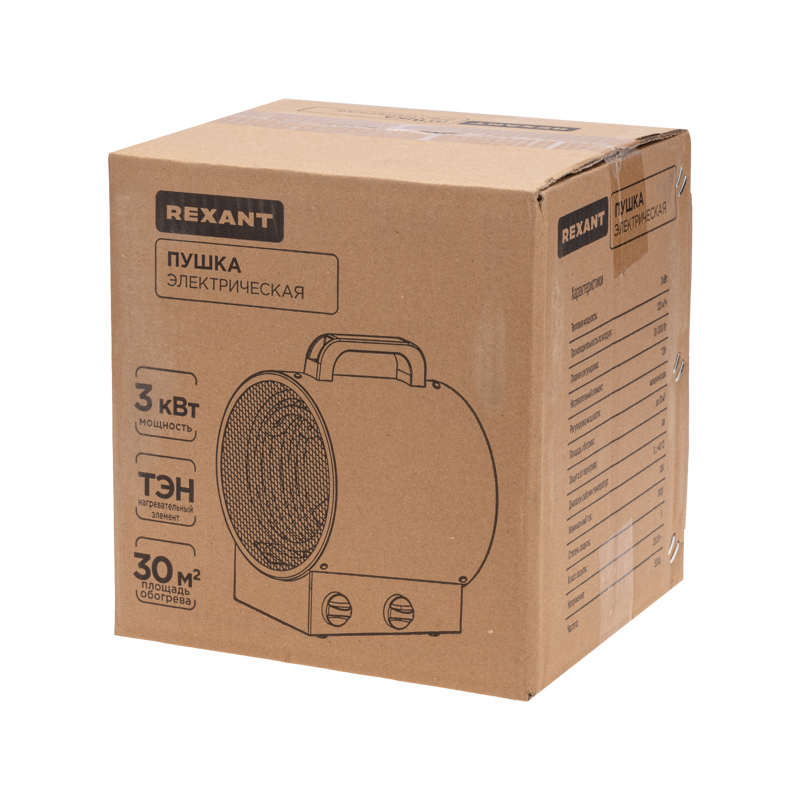 Пушка тепловая электрическая, круглая, прямоугольная подставка, ТЭН, 3кВт REXANT